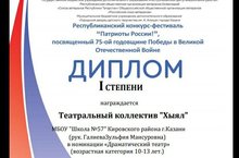 Поздравляем Театральный коллектив "Хыял" и его руководителя Галиеву З.М. в номинации "Драматический театр" в Республиканском конкурсе Патриоты России".