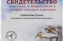 Ученицу 4А класса Шавалиеву Диану, участницу IX Всероссийского интернет-конкурса кормушек.