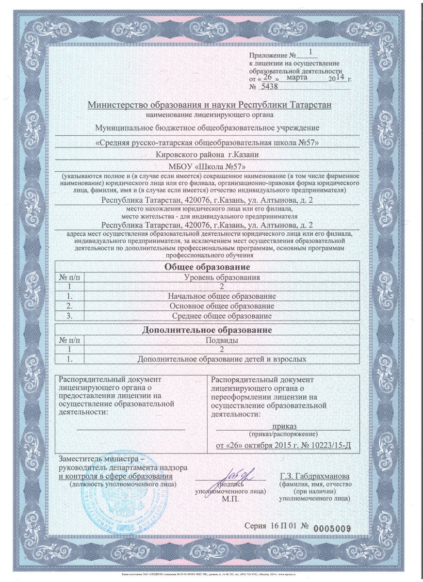 Приложение №1 к лицензии на осуществление образовательной деятельности