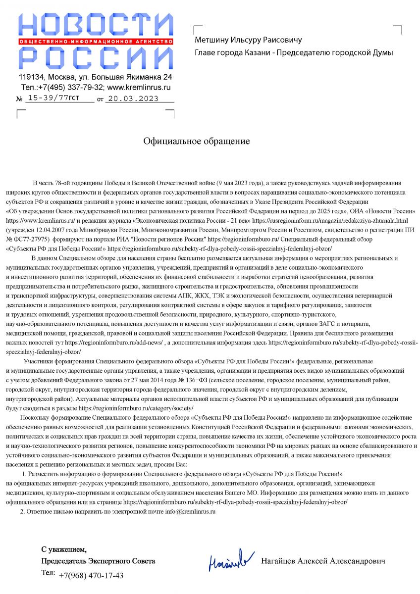 Министерство образования и науки Республики Татарстан направляет письмо Министерства просвещения Российской Федерации от 09.01.2023 № АБ-1/15 «О горячей линии Общероссийской общественной организации «Народный фронт «За Россию» (далее – ОНФ) в целях информирования и актуализации информации на информационных ресурсах общеобразовательных организаций о горячей линии ОНФ.
