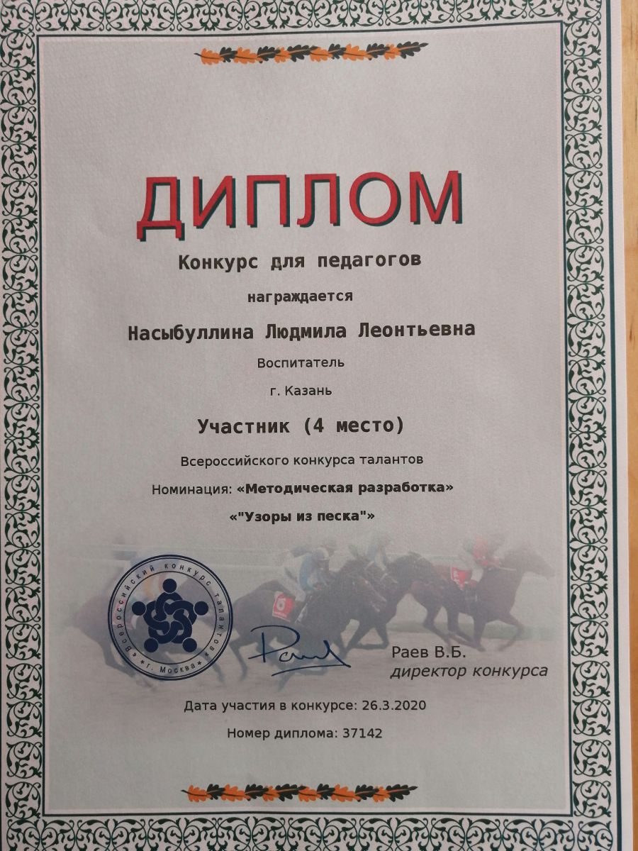 Диплом за 3 место во всероссийском конкурсе "Горизонты педагогики" Насыбуллиной Людмилы Леонтьевны