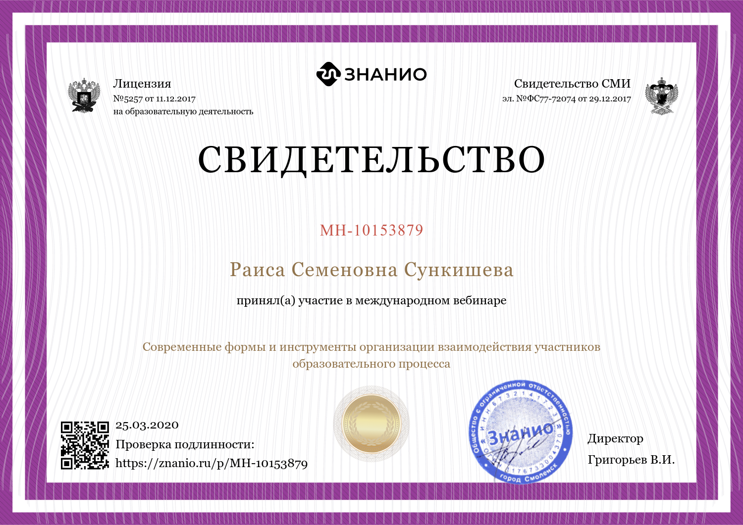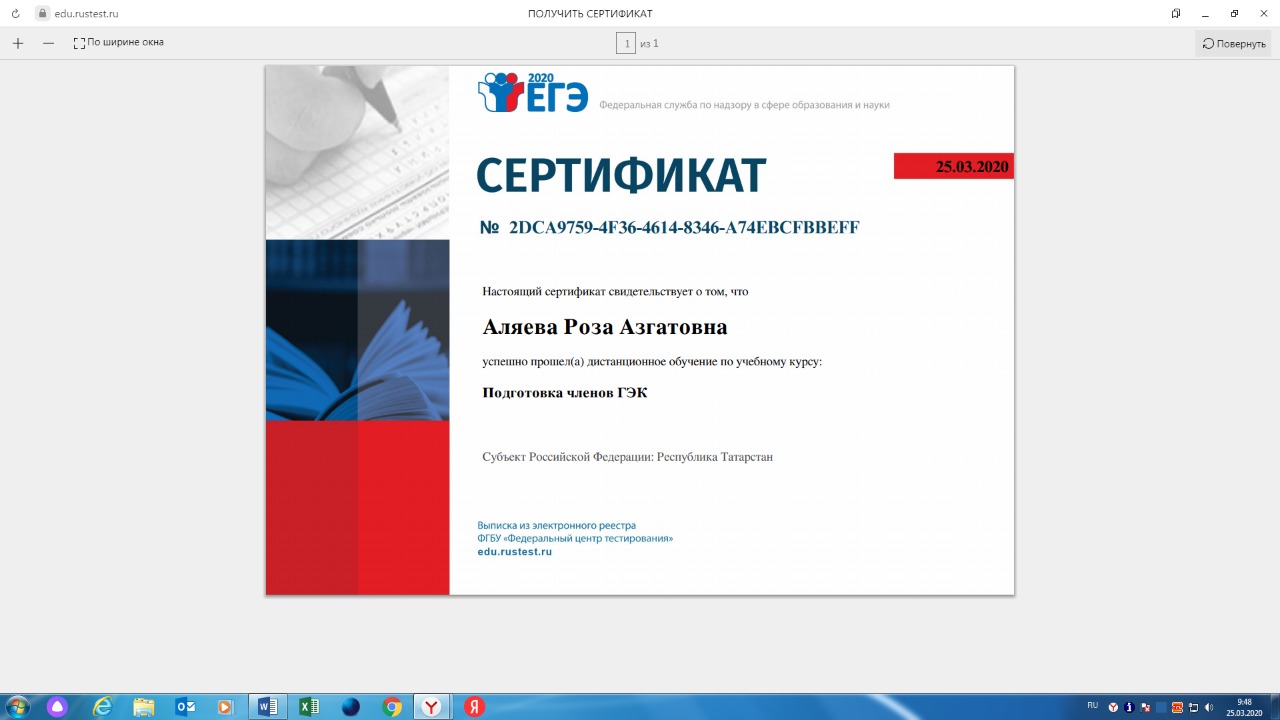 Сертификат по подготовки членов ГЭК Аляевой Розы Азгатовны