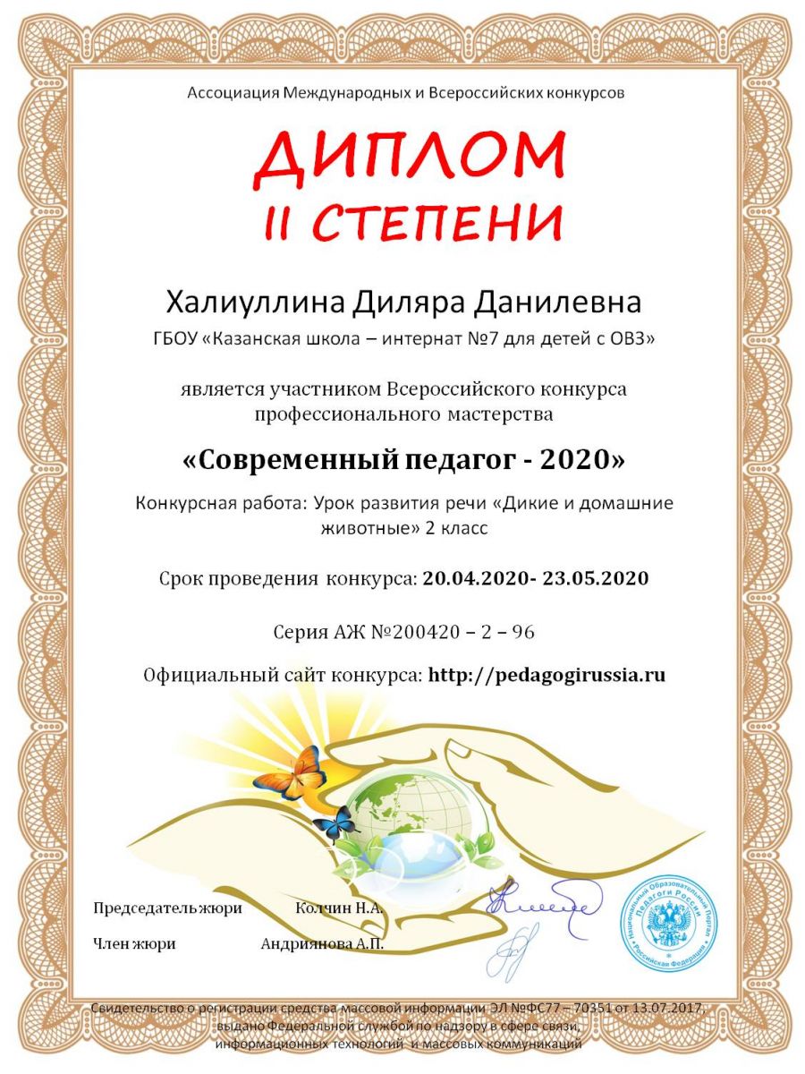 Диплом 1 степени во всероссийком твореческом конкурсе "Конкурсплюс" Халиуллиной Диляры Данилевны