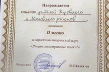 Поздравляем учителей, занявших 2 место в городской творческой игре "Виват, иностранные языки!"!!! От нашей школы участвовал учитель английского языка И.Ю. Кабанова.