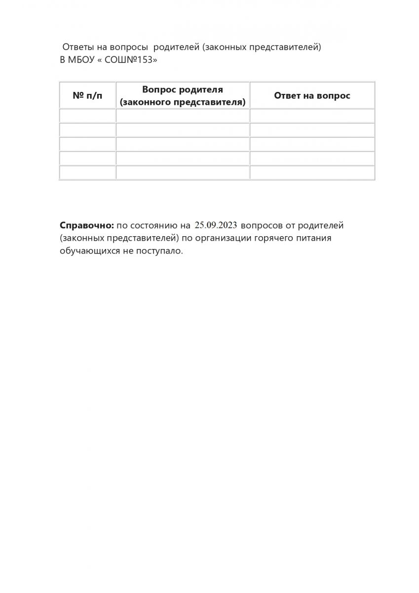 Часто задаваемые вопросы родителей (законных представителей) по вопросам питания