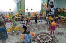 Нәни балаларыбыз музыка шөгылендә яфраклар белән биергә өйрәнделәр.