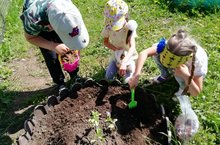 Зурлар төркеме балалары тырышып чәчәк утырталар.