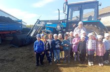 Балаларның әйләнә-тирә дөнья турында белемнәрен тирәнәйтү максатыннан, балаларны ат фермасына экскурсияга алып бардык. Ферма хуҗасы Ханафиев Р.М. балаларны бу хайваннарның гадәтләре, яшәү шартлары һәм туклану үзенчәлекләре белән генә түгел, ә авыл -хужалыгы техникасы белән дә таныштырды. Экскурсия балаларда зур кызыксыну уятты, йорт хайваннары белән аралашу күнекмәсе формалашты. Балаларда экологик тәрбияләүне якын тирәлекнең табигате белән танышудан башлау бик мөһим.