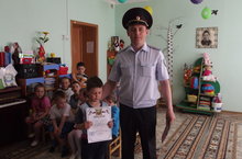 Нашего воспитанника Галимуллина Ильяса из старшей группы приехали поздравить из Кукморского отдела полиции за активное участие в конкурсе рисунков и поделок "Полицейский Дядя Степа!" Молодец!
