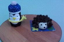 Гатиятова Чулпан белән Даниярның гаиләләре ясаган керпе һәм пингвин.