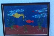 "Аквариумда балыклар" композициясен Юсуфзянова Самина гаиләсе чын рәссамнарча эшләгән.