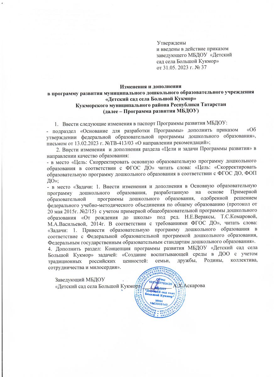 Приказ о внесении изменений и дополнений в программу развития ДОУ