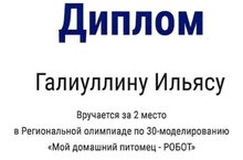 Ученик 9Б класса Галиуллин Ильяс занял 2 место в Региональной олимпиаде по 3D-моделированию "Мой домашний питомец - РОБОТ".