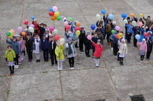 В школе была проведена акция "Голубь Мира". Были выпущены в небо бумажные голуби на гелиевых шарах.