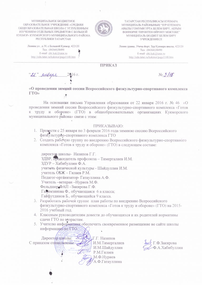 Приказ о введении Всероссийского физкультурно-спортивного комплекса "ГТО"