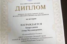 Бадрутдинов Амир-призер регионального этапа всероссийской олимпиады школьников по истории /Бәдретдинов Әмир- тарих буенча бөтенроссия олимпиадасының региональ этабы призеры 10.02.2021