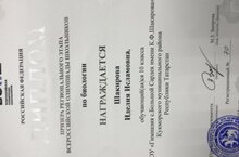 Шакирова Иделия- призер регионального этапа всероссийской олимпиады школьников по биологии 29.01.2024