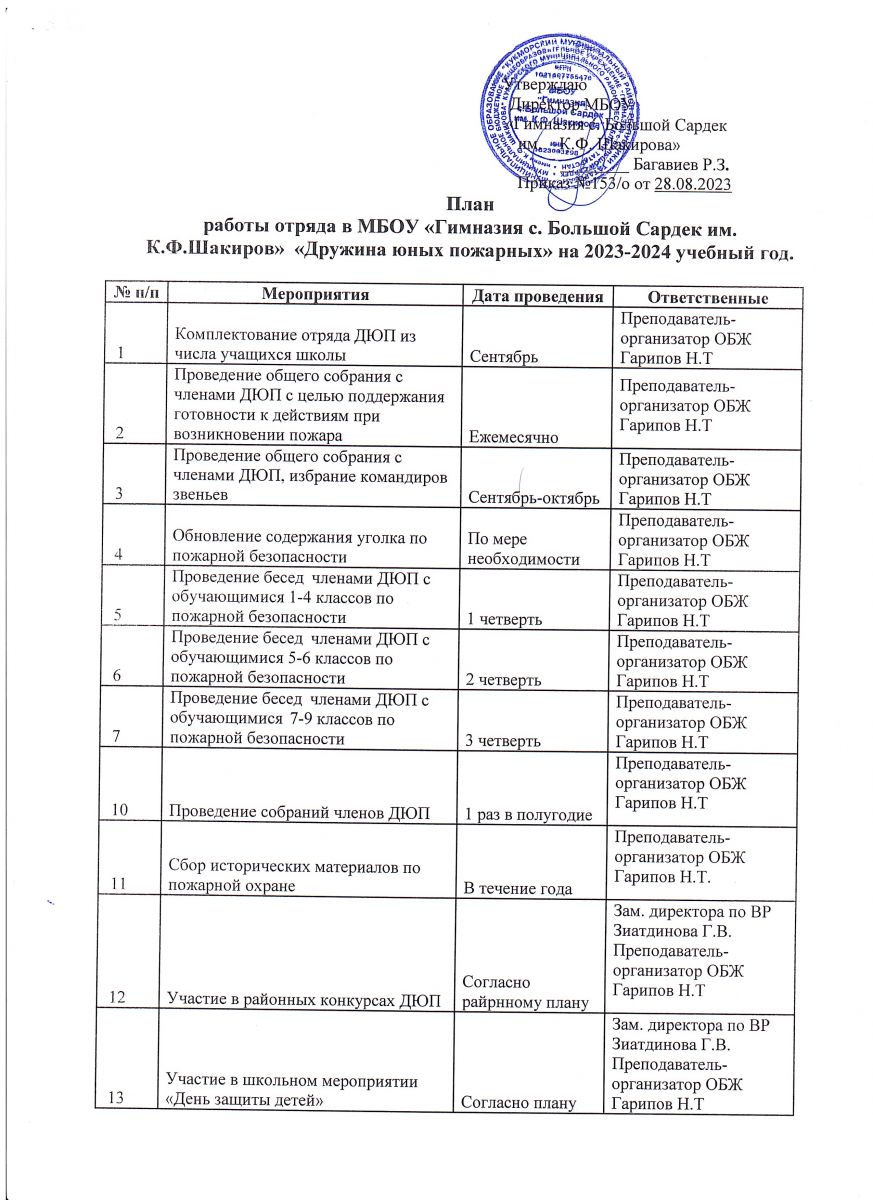 Положение о дружине юных пожарных МБОУ «Гимназия с.Большой Сардек им.К.Ф.Шакирова»
