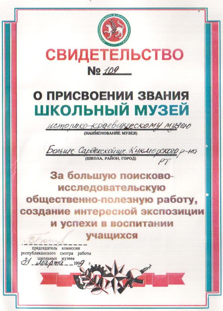 муниципальное бюджетное общеобразовательное учреждение «Гимназия с.Большой Сардек имени К.Ф. Шакирова» Кукморского муниципального района Республики Татарстан/Татарстан Республикасы Кукмара муниципаль районы «К.Ф. Шакиров исемендәге Зур Сәрдек гимназиясе» муниципаль бюджет гомуми белем бирү учреждениесе
