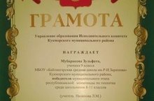 Мәктәбебез укучысы Мөбәрәков Зөлфәт геология фәненнән республика олимпиадасының муниципаль этабында җиңүче булды.Укучыбызны ихлас котлыйбыз,алга таба да белем үрләрен яулауда зур уңышлар телибез.