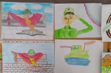 Башлангыч сыйныф укучылары арасында "Ватанны саклаучылар көне"уңаеннан рәсемнәр бәйгесе булып үтте. -