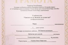 10 нчы сыйныф укучысы Кәримуллина Диләрә "Татар кызы" бәйгесендә катнашып лауреат булды (җитәкчесе Әхмәтгалиева Т.Т.).