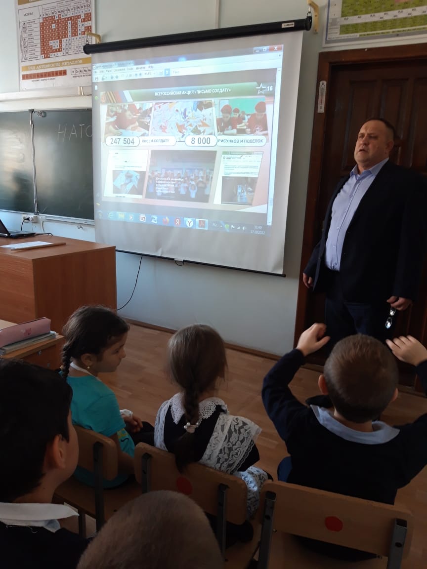 17 октября в рамках Всероссийской акции "Письмо солдату", Фахрутдинов А.М. - учитель истории МБОУ "ООШ им.Х.В.Вагапова с. Березняк " провел открытый урок "Урок мужества", в ходе занятия ознакомил обучающихся с примерами героизма и мужества различных поколений защитников Отечества, рассказал о важности оказания поддержки участникам специальной военной операции, а также мобилизованным военнослужащим, проходящим подготовку и боевое слаживание.