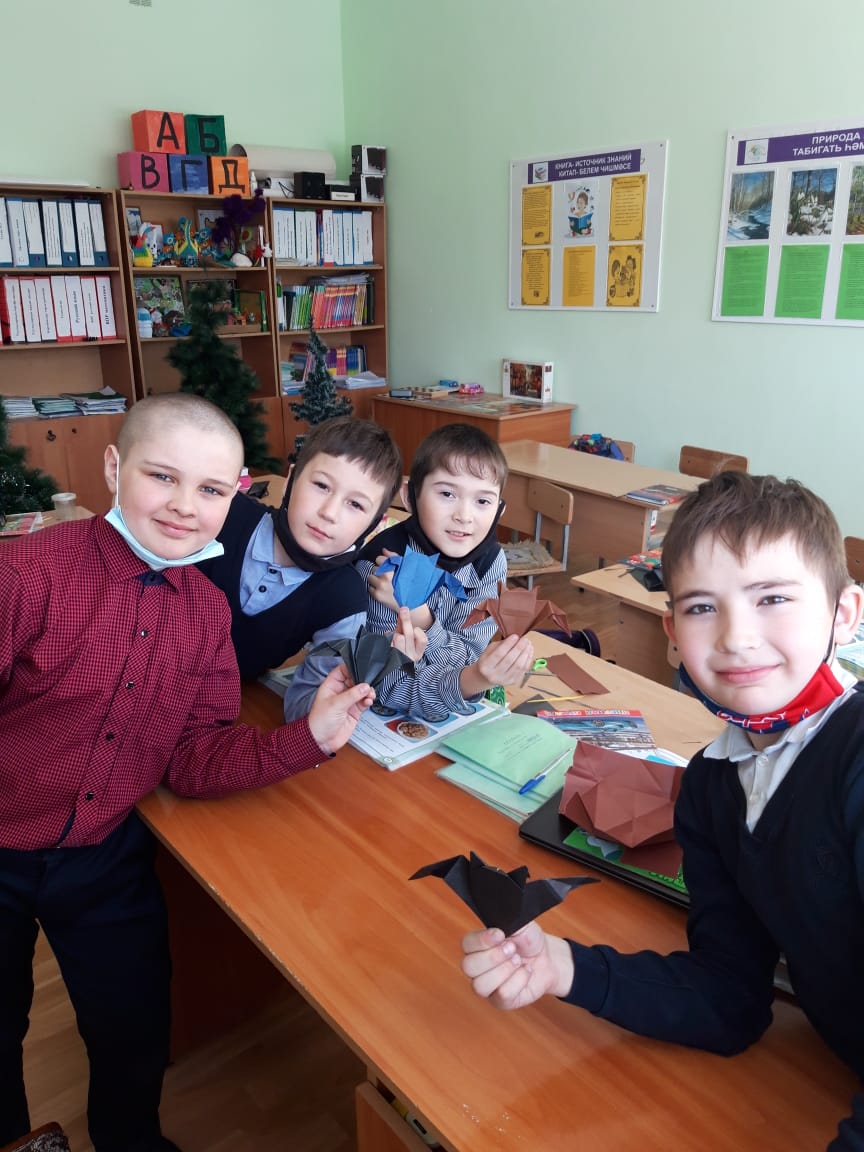 11 март көнне технология атналыгы кысаларында 4 нче сыйныф укучылары өчен "Кошлар һәм хайваннар кәгазьдән оригами техникасы буенча" дигән темага иҗат дәресе үткәрелде.