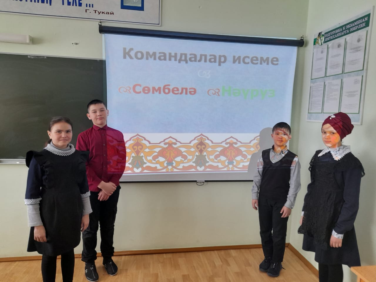 19 февраля с учащимися 5 класса был организован КВН “Җырдай моңлы татар теле”. Учащиеся разделились на две команды, отвечали на интересные вопросы, произносили скороговорки, пели, рассказывали стихи о родном языке.
