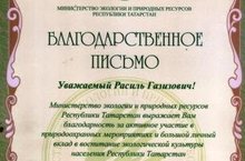 Министерством Экологии и Природных Ресурсов РТ учитель биологии и географии нашей школы Набиев Расиль Газизович поощрён Благодарственным письмом "За активное участие в природоохранных мероприятиях и большой личный вклад в воспитании экологической культуры населения"