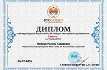 Учитель географии и биологии нашей школы Набиев Расиль Газизович удостоен Диплома I степени II го Международного педагогического конкурса РУСОЛИМП в номинации Методические разработки. Поздравляем и желаем дальнейших успехов!