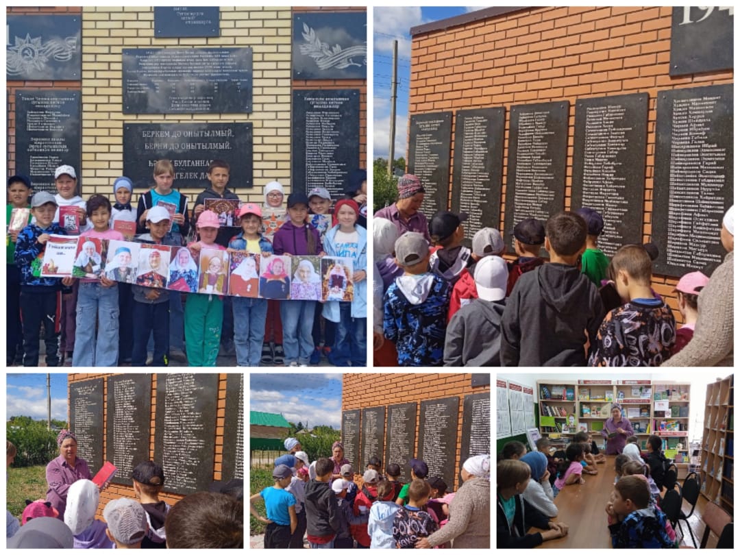 Сегодня мы побывали в сельской библиотеке. Сабирзянова Г.С. рассказала нам о Великой Отечественной войне. Потом побывали у памятника. Находили знакомые фамилии. Данное мероприятие одно из самых важных и действенных в воспитательной работе с обучающимися: воспитание чувства патриотизма, нравственное воспитание, учит уважать и ценить героическое прошлое нашей страны, уважение к старшим, к ветеранам.