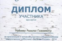 28 ноября 2014 года в министерстве экологии и природных ресурсов РТ принято решение о сотрудничестве между правительством РТ и всероссийской экологической организацией “Зелёная Россия”. В работе этого форума принял участие учитель географии нашей школы Набиев Р.Г.