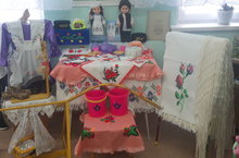 Татар халкының онытыла барган изге бәйрәмнәрен, гореф – гадәтләрен хәтердә яңарту һәм саклау, элекке чорның матурлыгын күрсәтү максаты белән “Әбиемнең серле сандыгы” диеп исемләнгән күргәзмә оештырып алдык. Балаларны татар бизәкләре белән таныштырдык, милли киемнәрнең исемнәрен,бизәлешләрен сөйләмдә кулланырга өйрәттек . Балаларда татар милли киемнәренә кызыксыну уятырга тырыштык.