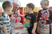 "Халык мәдәнияте һәм гореф-гадәтләре белән танышу" дигән тематик атна кысаларында урта төркемдә "Әби сандыгы" дип исемләнгән балалар һәм ата-аналар иҗаты күргәзмәсе оештырылды.