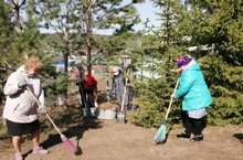Коллектив детского сада принял участие в уборке уголка леса детского сада.