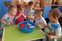 С целью формирования у детей представления о свойствах воды с детьми второй группы раннего возраста была проведена игра-экспериментирование на тему "Плывут кораблики".
