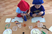 "Күзәнәк" төшенчәсе, аның микроскоп астында төре белән танышу максатыннан, өлкән төркем балалары өчен "Суган күзәнәкләрен өйрәнү" темасына экспериментлау элементлары белән табигать белән таныштыру буенча белем бирү эшчәнлеге үткәрелде.