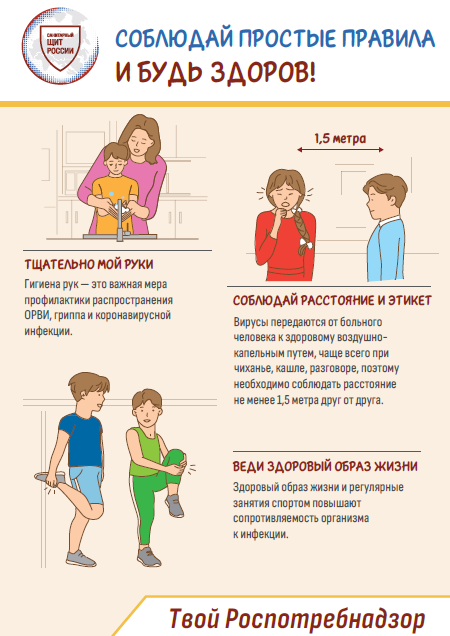 В рамках реализации федерального проекта "Санитарный щит-безопасность для здоровья (предупреждение, выявление, реагирование)" и с целью реализации коммуникационной стратегии "Санпросвет" просим родителей и сотрудников ДОУ ознакомиться с нижеизложенной информацией. Для сохранения здоровья соблюдай простые правила!