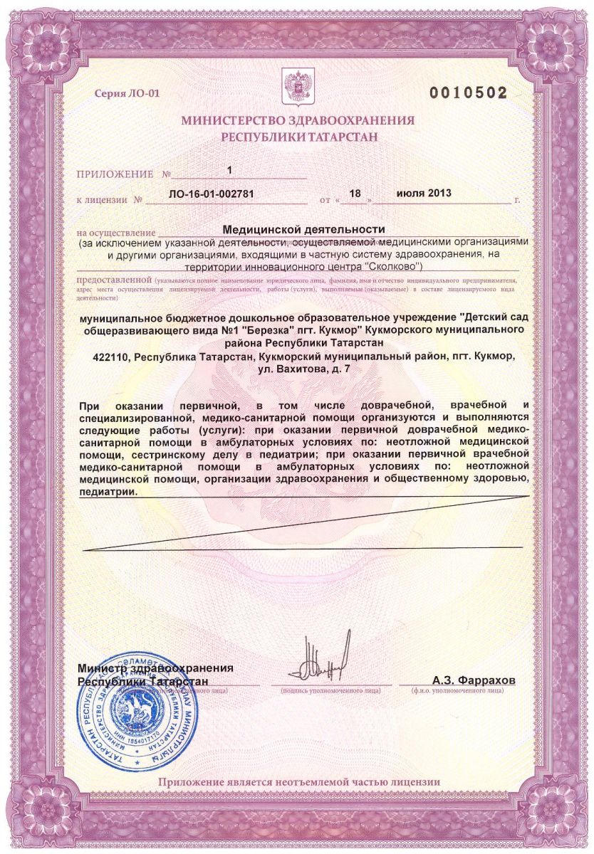 Приложение № 1 к лицензии