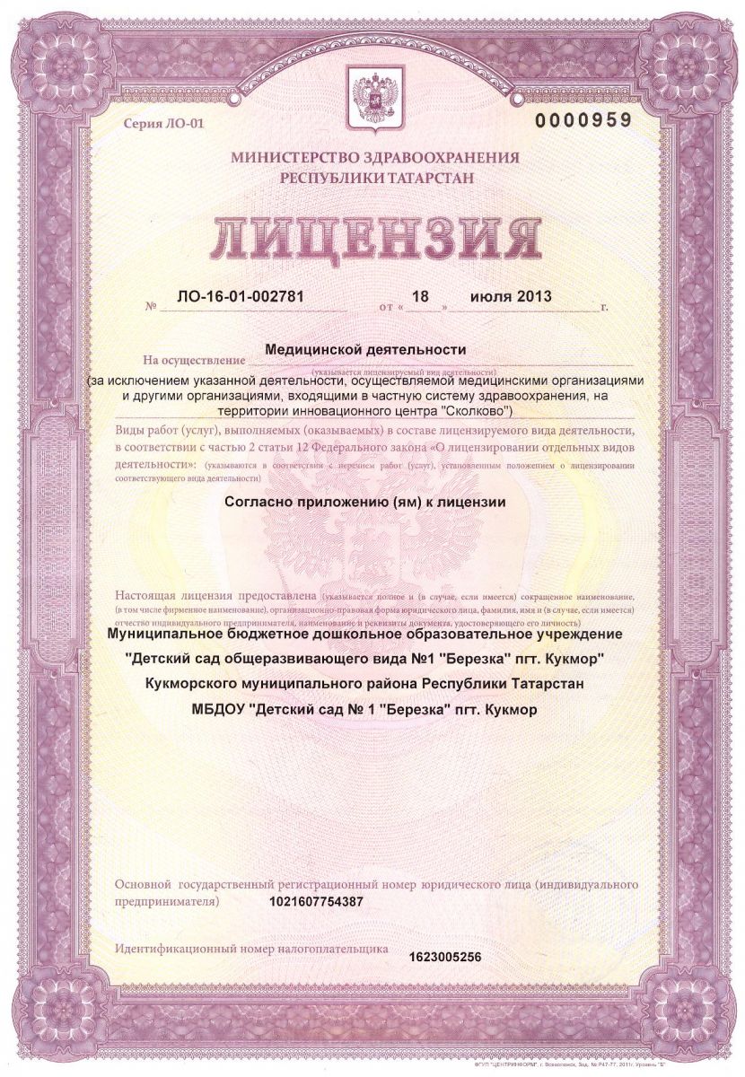 муниципальное бюджетное дошкольное образовательное учреждение "Детский сад общеразвивающего вида №1 "Березка" г. Кукмор" Кукморского муниципального района Республики Татарстан/ Татарстан Республикасы Кукмара муниципаль районының " Кукмара шәһәре беренче номерлы "Каенкай" һәръяктан үстерешле балалар бакчасы" муниципаль бюджет мәктәпкәчә белем бирү учреждениесе
