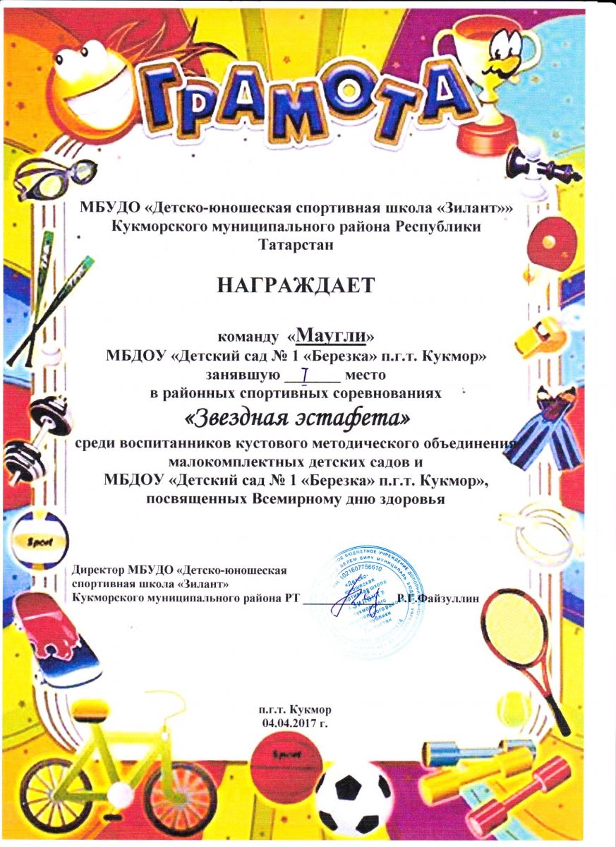 Команда "Маугли" МБДОУ "Детский сад № 1 "Березка" п.г.т. Кукмор" - 1 место;