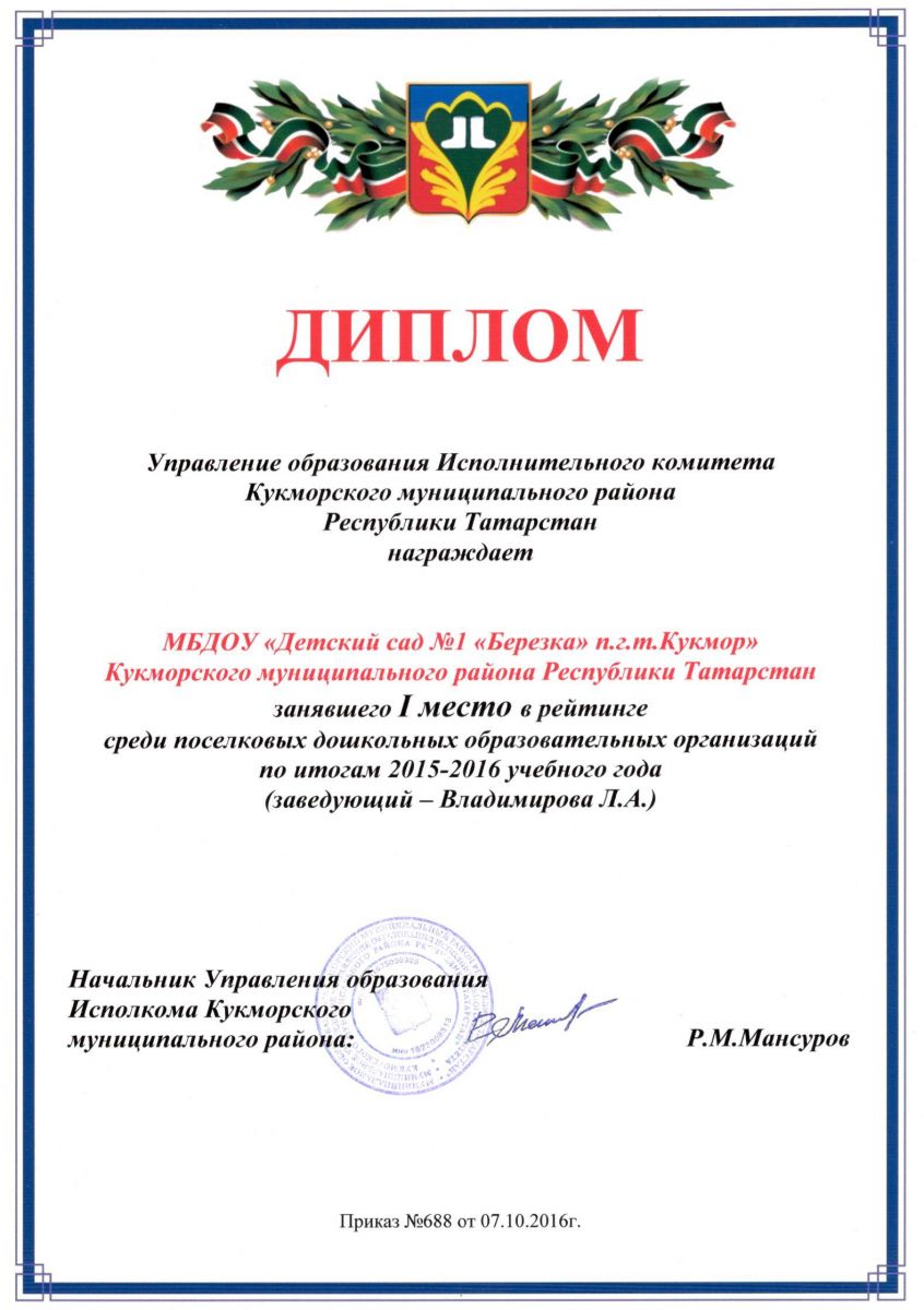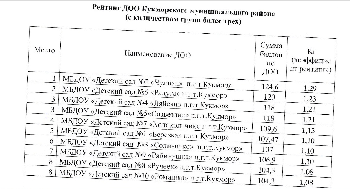 Рейтинг среди детских садов Кукморского муниципального района РТ