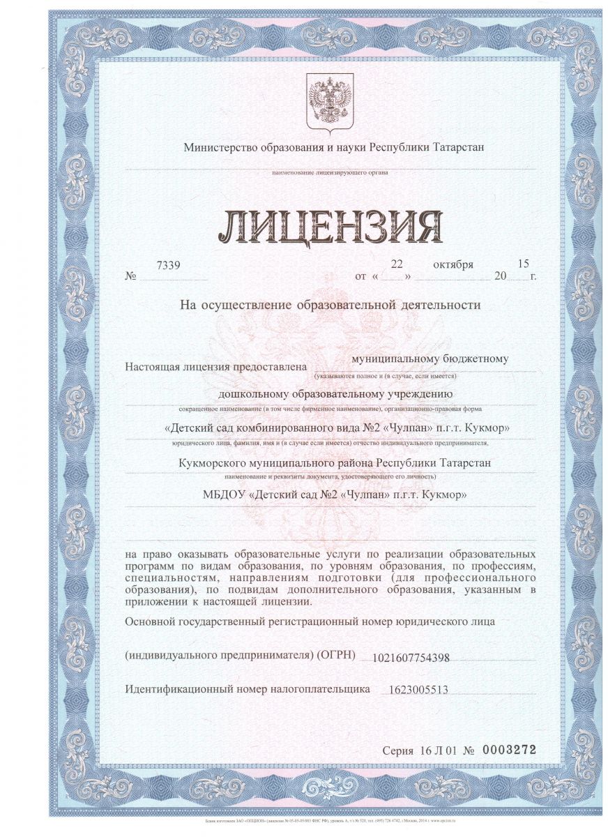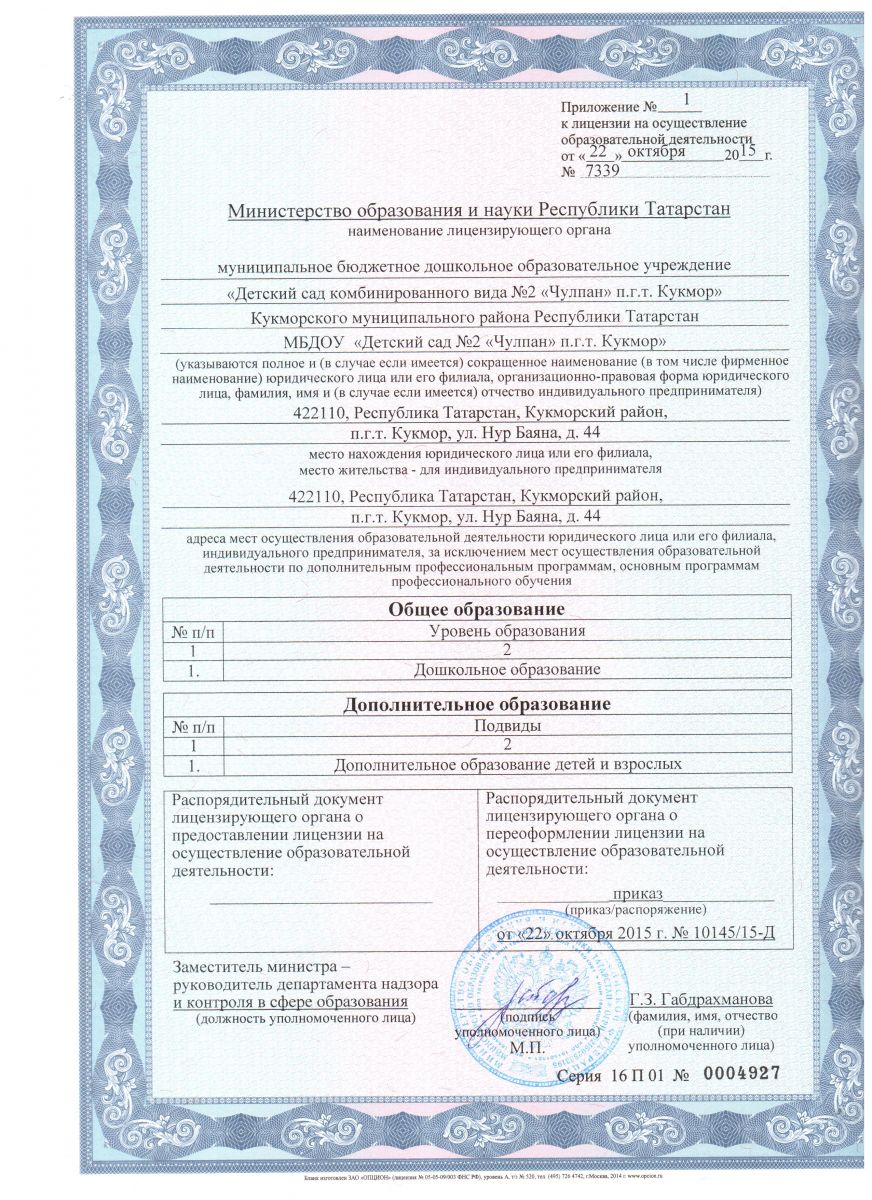 Лицензия на осуществление образовательной деятельности/ Белем бирү эшчәнлегенә лицензия