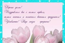 Дорогие коллеги, мамы, бабушки, воспитанницы! От всей души поздравляем Вас с первым весенним праздником 8 Марта! Желаем Вам всех благ, которые есть на земле!