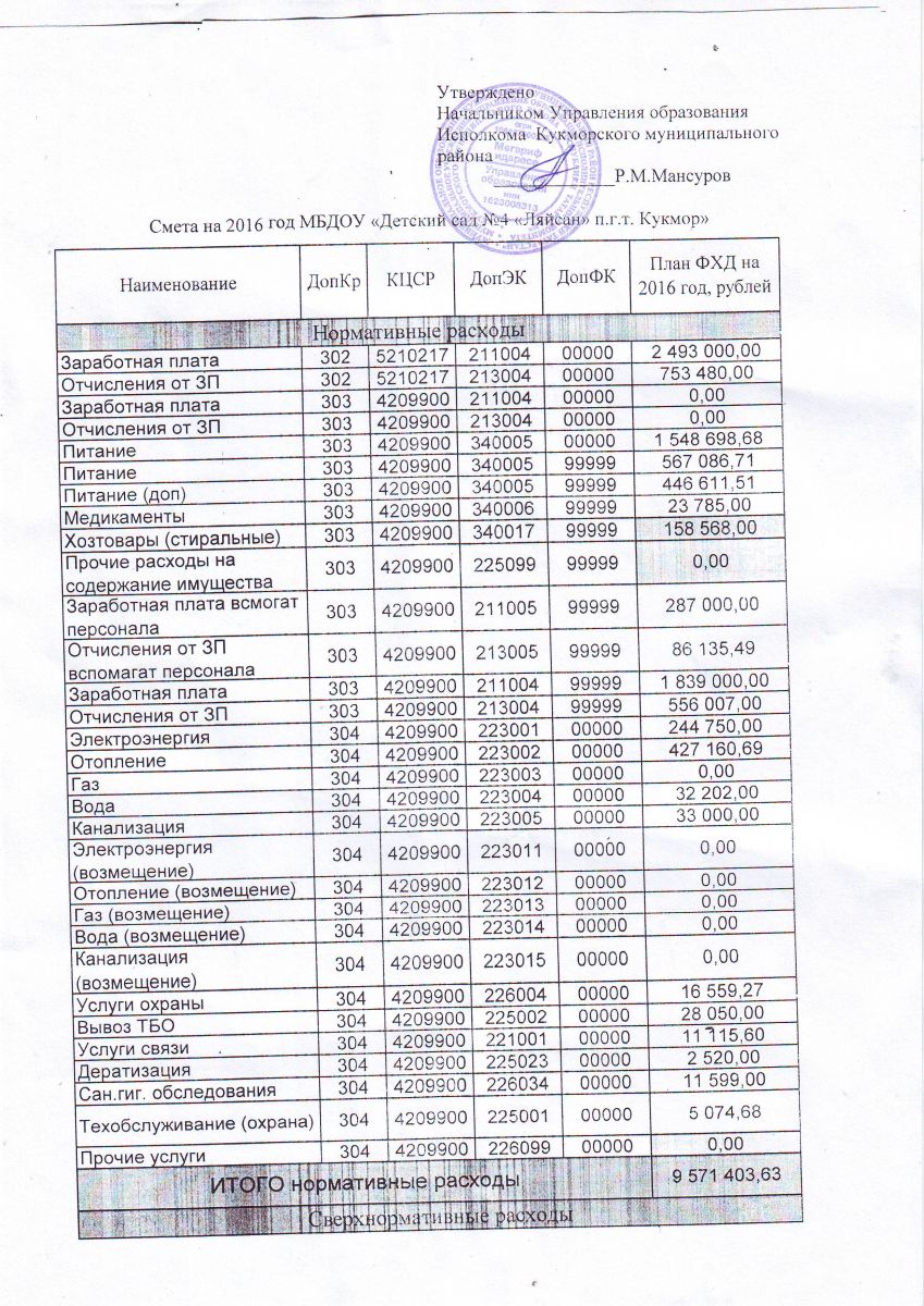 Смета на 2016 год МБДОУ "Детский сад №4 "Ляйсан" пгт.Кукмор"