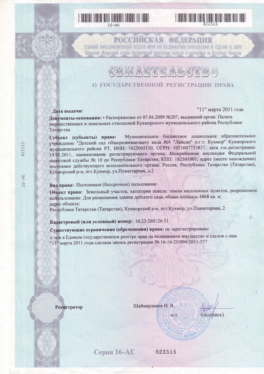 Короткое название: МБДОУ "Детский сад №4 "Ляйсан" пгт Кукмор"