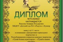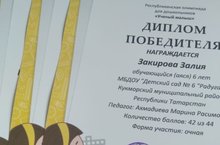 Безнең өлкән тәрбияче Ямалова Земфира Илдар кызы һәм Тапайкин Илназ "Тукай безнең йөрәкләрдә"дип исемләнгән ачык республика конкурсында катнаштылар. Конкурс нәтиҗәләре буенча Земфира Илдар кызы призер булды, ә Тапайкин И.җиңүче булды. Афәрин!