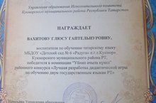 Победитель конкурса"Лучшая дидактическая игра по обучению детей двум государственным языкам РТ" 22.01.2016