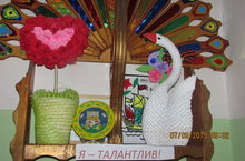 Завершающим мероприятием в рамках недели "Я - талантлив" стала выставка поделок детей и родителей. На выставке были представлены работы из бумаги, дерева, бросового материала. Мы еще раз убедидись в том, что совершенству нет предела, и талантливый человек- талантив во всем. Желаем нашим воспитнанникам дальнейших творческих и спортивных успехов.!